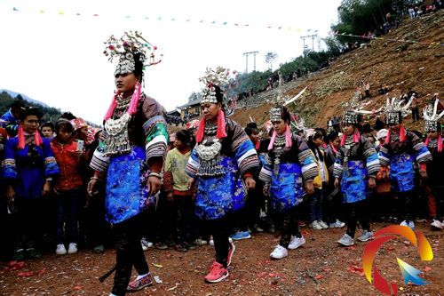 苗族姑娘翩翩起舞參加踩歌堂活動(李長華 攝)