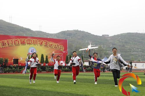 開幕時,施秉縣青少年活動中心航模班的幾名學員胸掛遙控器,興致勃勃地提起航模一字排開,在指導老師的一聲令下,他們嫻熟地操作遙控器杠舵,指揮航模繞飛運動場,翱翔天空,頓時響起了雷鳴般的掌聲。