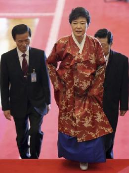 總統女發言人金幸(音譯)告訴媒體記者:“樸槿惠從一開始就明確希望,身穿韓服出現在光化門廣場(就職日街頭慶祝活動現場)和招待宴會上,以此讓世界了解韓國傳統文化……總統將選擇合適時機,在更多重要場合穿著韓服。”