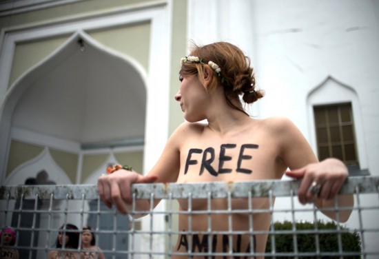 此后,“菲曼”組織了大量示威活動(dòng),包括抵制歐錦賽期間賣淫、反對(duì)意大利總理貝盧斯科尼歧視女性、反對(duì)伊斯蘭國家歧視婦女等,甚至連政府因管道維修切斷熱水、養(yǎng)老金改革等都成為她們抗議的主題。去年9月18日,“菲曼”在巴黎成立法國分部,影響力迅速向國外鋪開。迄今已在法國、德國、美國、俄羅斯和白俄羅斯等國組織過多場活動(dòng)。今年4月4日,“菲曼”更發(fā)起全球性“半裸革命”,聲援突尼斯少女阿米娜在互聯(lián)網(wǎng)上展示袒胸照片。