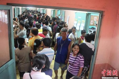 5月13日,菲律賓舉行中期選舉投票。菲律賓首都馬尼拉一個設在小學的投票點里,人頭攢動,熱鬧非常。中新社發 張明 攝