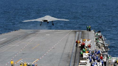 一架X-47B型隱形無人駕駛飛機(jī)當(dāng)天從弗吉尼亞海岸附近的喬治•布什號(hào)航空母艦上起飛,完成一系列的預(yù)定飛行動(dòng)作之后飛往位于馬里蘭州的一個(gè)降落地點(diǎn)。