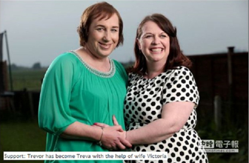 6月13日 據(jù)臺(tái)灣《中國時(shí)報(bào)》援引英國《每日鏡報(bào)》消息,39歲女子維多利亞(Victoria)讓41歲的老公特雷弗(Trevor)改名特麗華(Treva),完成多年以來的變性心愿,成為一個(gè)貨真價(jià)實(shí)的女人,更特別的是變性前特雷弗還是個(gè)英氣十足的軍人,曾經(jīng)在福克蘭群島及波西尼亞服役。