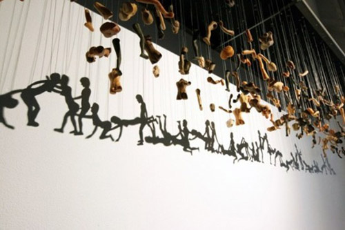 據美國《赫芬頓郵報》6月17日報道,韓國藝術家Bohyun Yoon的裝置藝術作品“合體”(Unity)和“影子的結構”(Structure of Shadow)運用巧妙的光學技巧,將肢解的人偶玩具的肢體在燈光下展現出完整的人物陰影,一卷春宮圖躍然墻上。