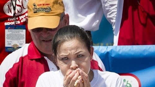 “黑寡婦”托馬斯(Sonya Thomas)吞下36又3/4個(gè)熱狗,女子組無敵手。