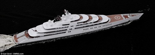 據(jù)報道,該游艇由德國的“盧爾森”(Lurssen)游艇公司承建,游艇船身長590英尺(約179.8米),造價約為4億英鎊(約合人民幣36.55億元)。