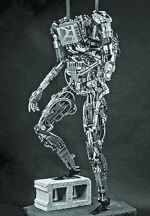 “阿特拉斯”身高1.9米,體重150千克,由頭部、軀干和四肢組成,像人類一樣用雙腿直立行走,令人聯想起科幻電影中的“終結者”。它的“雙眼”是兩個立體感應器,有兩只靈巧的手,還能在實時遙控下穿越比較復雜的地形。