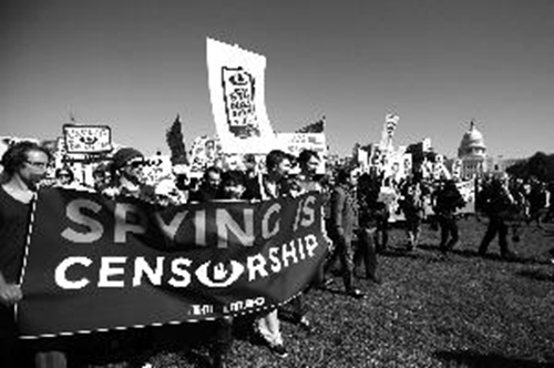 當天恰逢美國《愛國者法案》簽署生效12周年紀念日。上百家非營利組織和企業共同在位于華盛頓心臟地帶的國會大廈附近舉行活動,抗議美國國家安全局等情報機構所實施“棱鏡”等秘密情報監控項目。