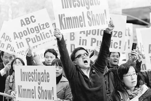 針對美國廣播公司播出有辱華言論的節(jié)目,美國華人10月19日在白宮網(wǎng)站發(fā)布請愿書,到11月6日支持請愿活動的人數(shù)已經(jīng)超過了白宮承諾給予正式回復的10萬人。此外,華人還舉行了10余場活動進行抗議,包括在美國廣播公司東西總部所在地紐約和洛杉磯的活動。美國廣播公司夜間節(jié)目主管和主持人已就該辱華言論致歉,并承諾撤銷該節(jié)目,但不少華人認為道歉缺乏誠意。