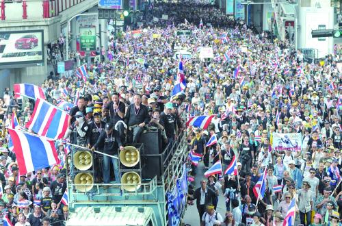 數萬名示威者包圍總理府、議會大廈、軍事和警察駐地以及電視臺,并占領財政部、外交部,要求政府下臺……泰國首都曼谷25日發生的“似曾相識的一幕”勾起許多人的痛苦記憶——3年前那場聲勢浩大的示威在泰國引發血腥沖突,造成90多人死亡。剛平靜了兩年的泰國會陷入新一輪街頭暴力泥潭嗎?欲發動百萬人大抗議將英拉政府拉下臺的反對派誓言要讓他信及其追隨者“見識人民的力量”。而支持政府的“紅衫軍”也在蓄勢待發。泰國總理英拉則成為矛盾與壓力的直接匯聚點,法新社25日援引泰國分析人士的話稱,“英拉的選擇已經非常有限”。《曼谷郵報》則援引專家的話感慨道,薄弱的國家機制、持續的政治沖突和不斷的示威抗議正讓泰國面臨變成“失敗國家”的風險。