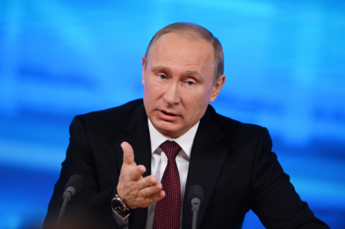 俄羅斯總統普京在年度新聞發布會上回答記者提問。