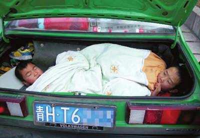 一大家子7人準(zhǔn)備從青海回大荔縣老家奔喪,但沒(méi)買上火車票,只好開(kāi)著自己的出租車往渭南趕,而兩個(gè)9歲的小孩就塞在了出租車后備箱里,行駛至連霍高速寶天段時(shí),被巡邏的寶雞交警發(fā)現(xiàn),及時(shí)排除了隱患。