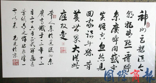 神州巨龍?zhí)?今朝把睛點 一躍跨京廣 瞬間感寒炎 悟空忽然見 回家跟頭練 昔贊世界大 從此應(yīng)改變——集團(tuán)副總經(jīng)理兼京石武高鐵項目經(jīng)理郭志光題(圖片由趙守民、王元東提供)