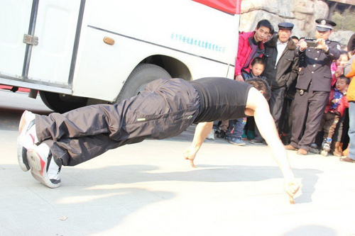 2013年1月23日,謝桂仲現(xiàn)年36歲,嵐皋縣堰門鎮(zhèn)瑞金村人。今年謝桂仲收到中央電視臺春晚導(dǎo)演組邀請,目前正苦練單指直立,力爭能站上2013年春晚舞臺。1995年,19歲的謝桂仲進入安徽省巢湖市少林武術(shù)學(xué)校學(xué)習(xí)。因其手指粗壯有力,所以在教練的建議練指功。3年內(nèi),他練成單指推車、單指俯臥撐及肚皮吸碗拉車、鋼筋抵喉推車等硬功和絕活,并被學(xué)校留聘為教練。2001年,謝桂仲離開武校,南下打工。10余年來,一直堅持訓(xùn)練指功和各項絕活。如今,他已能單指平地推動19輛4噸以下車輛10米遠,先后赴全國多地及意大利表演,收到了來自美國、英國、韓國等多個國家發(fā)來的邀請函。