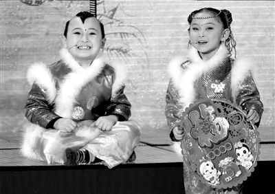 鄧鳴賀(左)和妹妹鄧鳴璐在央視蛇年春晚中表演《剪花花》