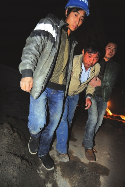 就在查找被埋工友的具體方位時,他們突然聽到有人呼喊:“救命啊!”他們隨著喊聲望去,發現一名工友倒在黃土的邊緣,腿部被黃土掩埋。看到有人還活著,大家迅速跑過去營救,可是工友痛苦地呼喊著說,他的腿疼得厲害,讓大家不要動他。無奈,他們徒手慢慢刨開其身上的黃土,將他從土堆中拉起來。