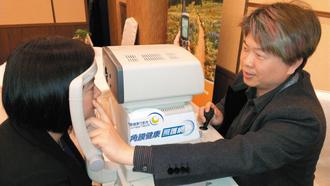 眼科醫師林浤裕(右)發現,眼球老化年齡下修,不少低頭族女性為眼球老化求診。