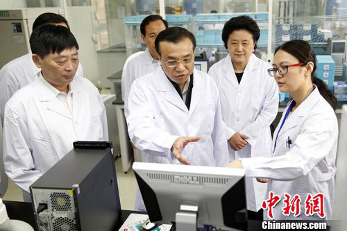 中國國務院總理李克強28日來到中國疾病控制中心病毒所考察病毒檢測、基因序列分析等工作,并與中心工作人員交流。(記者 盛佳鵬、郭金超)