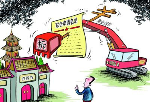 郭旃:不排除一種可能,八九月份國際專家來考察的時候,我們和國家專家一起再探討一下。如果這些房子不拆遷,他們是支持申遺的,因為申遺是一件有利于宗教界,也有利于國家、民族的好事情。我們做出一種承諾,我們中國是負責任的,我們說兩年之內或者三年之內,解決了問題再去拆遷,這種情況下,看國際社會能不能同意。另外一種情況是,我們堅持它不能拆遷,看大家可不可以接受,國際社會可不可以接受。系列申報項目還有一個說法叫做擴展,就是這個項目已經列進去以后,大家以后還可以加入進來。如果興教寺的問題到最后都不能得到大家一致滿意的解決,到那個時候,再向國際組織提出我們希望把它拿下來,看看國際組織能不能接受。