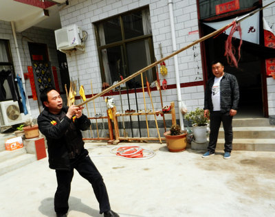 李春江愛好廣泛,閑暇之余為記者表演了武術(shù)