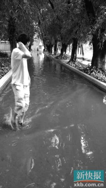 (原標題:水漫華工 男生校園捉15斤大鯰魚)