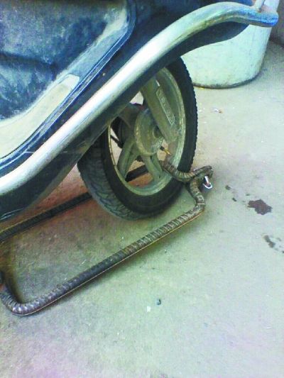 記者昨看到,這把車鎖由拇指粗的鋼筋制成,樣式很簡單,彎成方形,鉆兩個孔,加一把鎖即可。