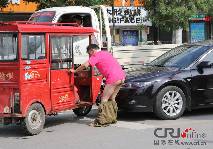 2013年7月16日,河南商丘,一男子闖紅燈被查,當街脫褲子。