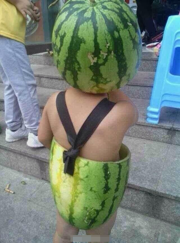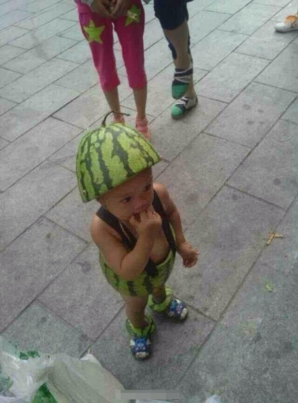 昨天,有網(wǎng)友發(fā)微博稱,在溫州城西街上看到了一個西瓜裝小孩,并曬出了三張照片,頓時萌翻了天,樂了不少網(wǎng)友,短時間內(nèi)就被轉(zhuǎn)發(fā)了一千多條,網(wǎng)友們對此褒貶不一。