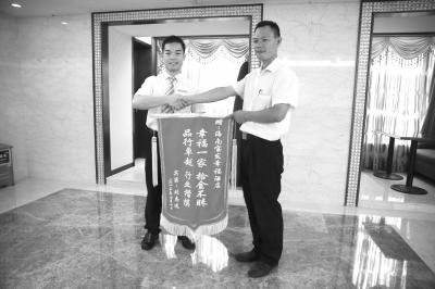 如果撿到相當(dāng)于自己8年工資的現(xiàn)金,你會(huì)怎么辦?26萬元,對(duì)于25歲儋州小伙符進(jìn)燕來說,相當(dāng)于8年工資。他的選擇是,把錢保管好后,立即尋找失主,完璧歸趙。昨日下午,已回到老家的失主劉先生委托在海口的朋友,給符進(jìn)燕的工作單位——海口寶發(fā)幸福酒店送錦旗。“到海南旅游,你會(huì)發(fā)現(xiàn),海南不但風(fēng)景美,人心更美!”劉先生感動(dòng)地說。酒店負(fù)責(zé)人告訴記者,酒店對(duì)符進(jìn)燕進(jìn)行了表彰,獎(jiǎng)勵(lì)他2000元,并將他從禮賓領(lǐng)班提拔為酒店大堂副經(jīng)理。