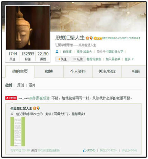 在30日晚11時19分,“思想匯聚人生”在微博推薦了一封信,標題為《一位父親給夢鴿的信》,這封信稱將李某送上法庭的不是楊女士,不是公訴人,而正是他的母親夢鴿女士。截止記者發稿時,這條微博已經轉發達3萬多次,評論4千余條。