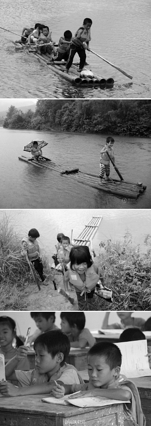 也就是說,這22名學生如果撇開水庫繞道行走,每趟得走4公里的鄉村公路,每天兩個來回得走16公里才能完成一天的正常學習。所以為了節省時間避免上課遲到,這20多名孩子每天都得自己撐著竹筏,渡過約500米的水面去上學。