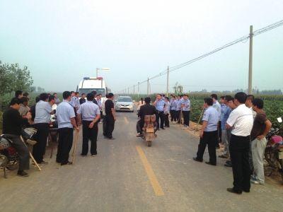 昨天下午6點,事發(fā)地周圍的棉花田邊,仍有十余輛警車。民警和村民手持木棍,在棉花田邊搜捕涉事惡狗。