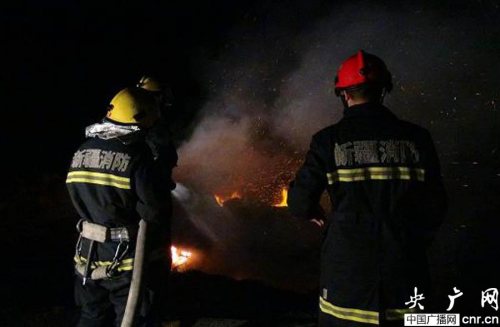 2013年9月16日4時49分,托克遜縣消防中隊接到指揮中心出警命令:托克遜縣G3012國道烏魯木齊至庫爾勒方向96公里處一輛滿載煤炭的半掛車起火。托克遜中隊立即出動2輛水罐車和8名指戰員火速趕赴火災現場。