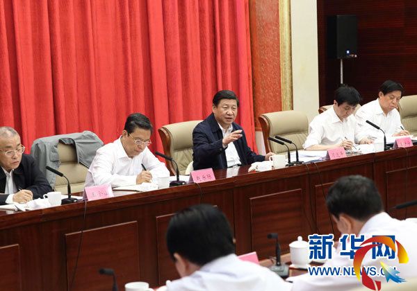 9月23日至25日,中共中央總書記、國家主席、中央軍委主席習近平到黨的群眾路線教育實踐活動聯(lián)系省河北,全程參加并指導省委常委班子專題民主生活會。這是23日上午,習近平聽取中央督導組關于河北省委教育實踐活動情況匯報。新華社記者蘭紅光攝