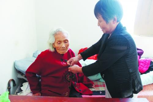 昨日下午,記者來(lái)到申愛(ài)琴家中時(shí),申愛(ài)琴101歲的婆婆任桂香正坐在床上打瞌睡,但衣著干凈,頭發(fā)整潔。“婆婆年紀(jì)大了,會(huì)經(jīng)常打瞌睡,但腦子一點(diǎn)也不糊涂,和別人拉家常一點(diǎn)都沒(méi)問(wèn)題。”申愛(ài)琴邊說(shuō)邊幫婆婆扣扣子。她告訴記者,婆婆的身體還不錯(cuò),能吃能睡,還可以自己扶著樓梯上下樓。