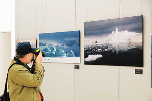 10月11日,大型公益攝影展“生命北極”在北京開幕。此次展出的423幅作品記錄了攝影家王建男先后17次以經濟型自助旅行方式進入北極的所見所聞。(劉婷 攝)
