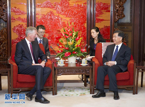 10月14日,中國國務院副總理汪洋在北京中南海紫光閣會見美國商會主席、安利公司董事長史提夫·溫安洛一行。 新華社記者謝環馳攝