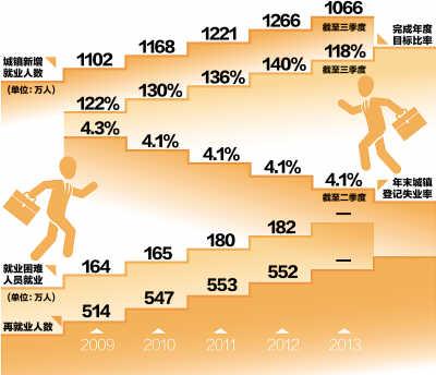 1—9月,全國(guó)城鎮(zhèn)新增就業(yè)累計(jì)1066萬人,提前實(shí)現(xiàn)年初確定的“全年城鎮(zhèn)新增就業(yè)900萬人以上”的目標(biāo)。與2012年同期相比,多增42萬人,預(yù)計(jì)到年底有望超過1200萬人。