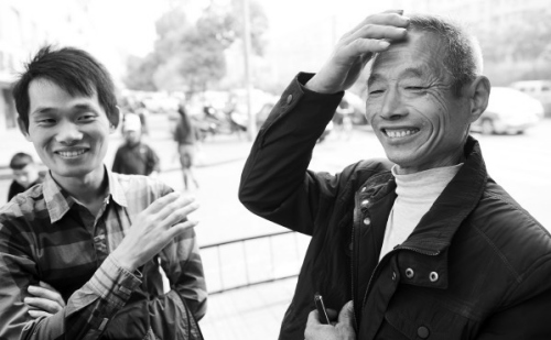 他緊緊地攥著字條,看得出神。突然,兩行眼淚從長滿皺紋的眼角滑落。攥著紙條的手顫抖著,連說:“好,好,好。”