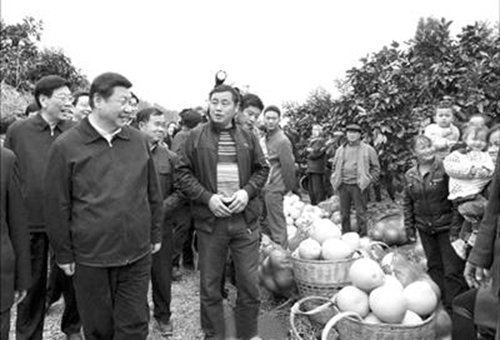 習近平邊走邊向村干部了解葡萄、柚子、獼猴桃等引種和銷售情況。看到路邊一筐筐水果,他拿起一個紅心獼猴桃剝皮品嘗,夸贊說“味道很好,口感很好。”聽說這種獼猴桃一斤12到15塊,一畝收入2萬4,他說:“那可是高附加值啊。”