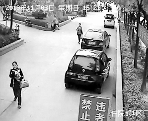 胡女士介紹,3點21分,女子抱著孩子出現在醫院大廳。她一路左右觀察,快步走到了醫院后門,直接上了一輛麻木(當地人對“三輪車”的稱呼)走了。從監控錄像看,女子抱著的孩子只穿了一層黃色衣服,沒包裹其他衣被,“口水巾的帶子還散著,肯定是我家孩子”。
