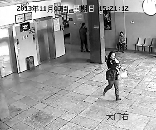 事發后,段雄義和家人在醫院保安室調看了監控。監控錄像顯示,當天下午,一名扎著馬尾辮、身著黑色衣服的女子一直在婦產科病區的走廊徘徊。事發前,該女子坐在走廊內一張直對著待產室的病床上,一邊玩手機一邊不時向待產室內張望,其所坐位置恰好可以看到男嬰,“3點18分,我跟我姐去衛生間,她剛好起身把手機往包里一塞。”胡女士說,按照時間推算,該女子就是此時進入了房間抱走孩子。