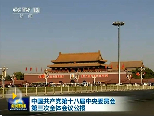 中國共產黨十八屆三中全會會議公報 圖片來源:中央電視臺