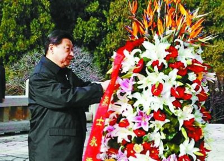 習近平25日來到位于山東臨沂的華東革命烈士陵園,向革命烈士紀念塔敬獻花籃,并參觀沂蒙精神展。當天,習近平還到物流基地與司機、貨主交談,并親切看望了“老支前”,聽說老人經常聽自己的講話時,習近平說:“請你批評指正。”