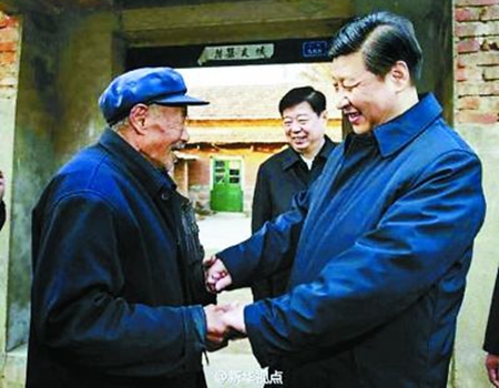 習近平來到臨沭縣曹莊鎮朱村“老支前”王克昌家看望。一家人干農活做柳編,日子“基本奔小康”。總書記說,我們這一代、下一代都要沿著中國特色社會主義道路向前,讓老區人民生活得更幸福。喜歡看電視的老人插話:“總書記講話我天天聽。”習近平說:“請你批評指正。”