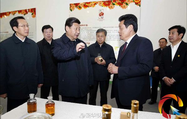 新華網北京11月27日電 據新華社“新華視點”微博報道,習近平26日來到菏澤市堯舜牡丹產業園,走進展廳、車間了解牡丹開發情況。得知牡丹不僅可觀賞、藥用,還煉出牡丹籽油,開發出茶、精油、食品、保健品,總書記十分感興趣。他拿起一瓶牡丹籽油,打開瓶蓋聞了聞,詢問定價、產銷情況。他表示,今天長了見識,令人印象深刻。
