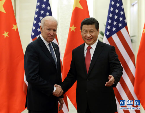 中國國家主席習近平4日在人民大會堂同美國副總統拜登舉行會談。雙方就中美關系及共同關心的國際和地區問題深入交換意見,一致認為,中美雙方要加強對話、交流、合作,努力推進中美新型大國關系建設。