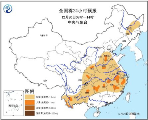 雖然降水較弱,但今晨到上午時間段內中國中東部地區卻將有較大范圍的輕霧或霾天氣。今日5時,合肥、武漢、長沙、南昌等地均觀測到了能見度不足5公里的霧或霾天氣。預計今日中午前,華北平原中南部、江南、云貴高原等地的部分地區有能見度不足1000米的大霧,局地有能見度不足500米的濃霧;華北南部、河南北部、陜西關中及江淮等地的局部地區將有中度霾天氣出現。