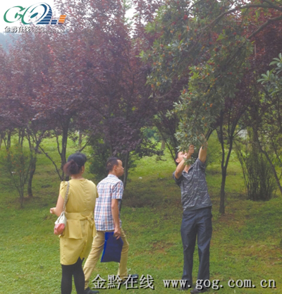6月12日,記者在觀山湖公園看到,公園內種植的“景觀楊梅”已經大量結果并成熟,許多游客看著熟透的楊梅,又想下手又怕被認為行為不文明。不想下手,又看著誘人的楊梅實在惹人垂涎。心想:“這里的楊梅莫非讓它成熟掉在地上也不準品嘗?”