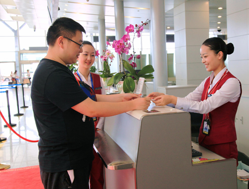 乘客正在辦理學(xué)生機(jī)票手續(xù)